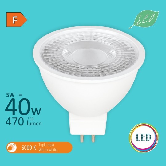 GU5.3 M2 5W 3000K MR16 ECO LED sijalica 240V 470lm 38° Mitea Lighting